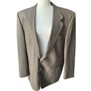 Elevate your wardrobe with this classic men's brown pinstripe suit jacket/blazer. Featuring a timeless 2-button closure, notched lapel, and a versatile design, this sport coat is perfect for business, weddings, or special occasions. The subtle pinstripe pattern and neutral brown color make it easy to pair with a variety of shirts and trousers. Fully lined for comfort and structure.