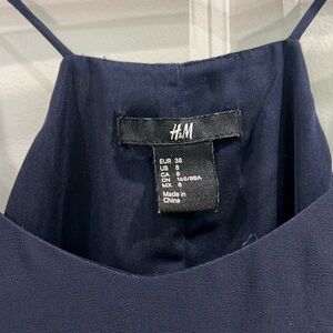 H&M midi length, high-low chiffon dress in navy blue. Excellent used condition, no damage or defects.