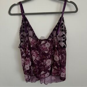 Y2K Lace Floral Sheer Purple Babydoll Cami Top Purple Fairy Coquette