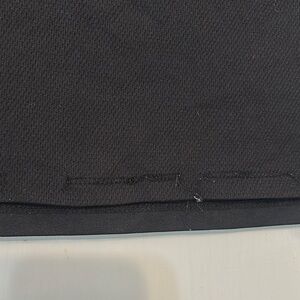 Back side bottom of the shirt has some strings coming out but still easily wearable. Shown in pictures