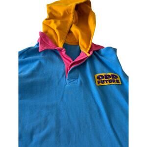Odd Future multi-colored long sleeve polo style hoodie Size large. Embroidered Logo. Lightweight, streetwear-ready. Boxy, relaxed fit. Pre-owned and in excellent condition. Size L.