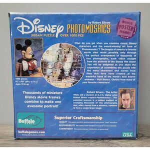 For sale is this Buffalo Games Disney Photomosaics by Robert Silvers Made in USA 1026 PC Jigsaw Puzzle 27" x 20" New Never Opened. Comes from a Smoke-Free Shop.