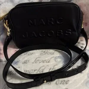 It features an embossed "MARC JACOBS" logo on the front and typically comes with a thick, adjustable, and detachable strap.