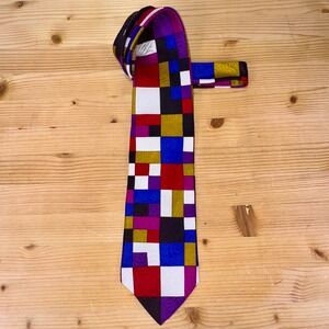 Krizia Uomo Italy Colorblock Silk Tie Made in Italy Abstract Mondrian Style