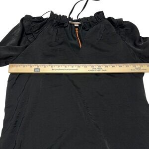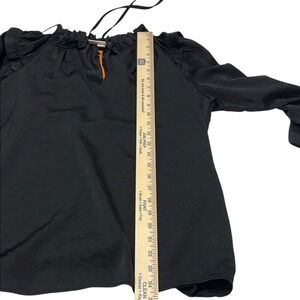 This elegant black blouse from Knox Rose features a flowing silhouette with ruffled sleeve details, offering a chic and sophisticated look. The soft fabric and classic design make it a versatile addition to any wardrobe, perfect for both casual and formal occasions.