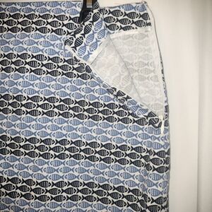 Chic Talbots skirt with a black and blue fish design. Adds a playful touch to any outfit.