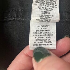 Free People colorblock mini skirt in charcoal and black. Features a flattering A-line silhouette with a zip fly and button closure. This versatile skirt is perfect for a casual day out or a stylish evening look.