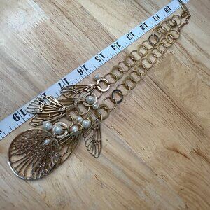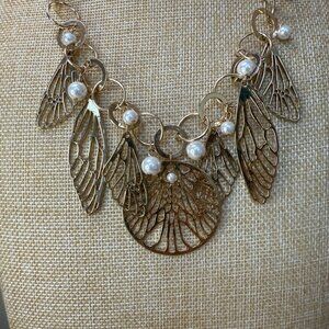 This Jessica Simpson necklace combines elegance and artistry with its intricate wing-shaped charms and faux pearl accents, ideal for enhancing sophisticated outfits.