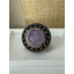 Sterling Silver Amethyst Ring With Marcasite Accents 925 Signed Size 6