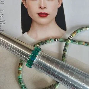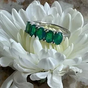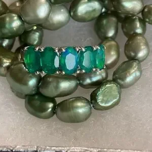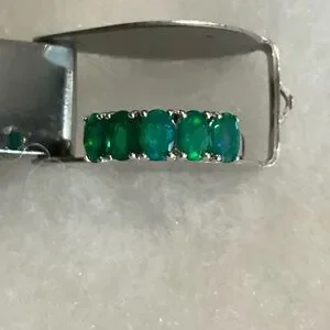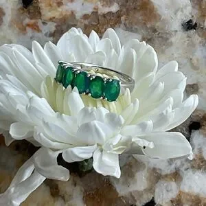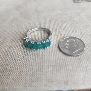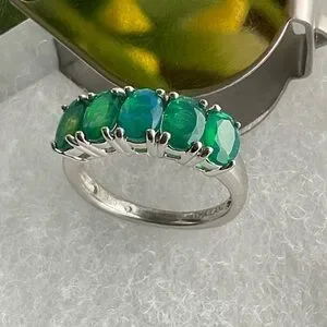 Elegant silver ring featuring stunning green opal stones. Perfect for adding a touch of sophistication to any outfit.