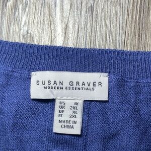 Elegant blue knit top by Susan Graver. Ideal for versatile styling. This item is in excellent condition. No rips, no tears or stains.