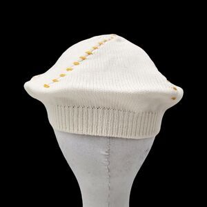 2/$20 Vintage Y2K White With Brown Pattern Knitted Hat Tuque Size: One size