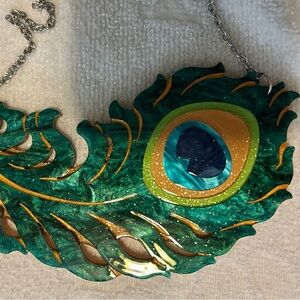 Fun large resin peacock feather necklace from Erstwilder.