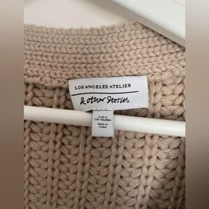 Stay cozy and stylish with this beige knit cardigan sweater. Perfect for layering, this sweater adds warmth and elegance to any outfit.