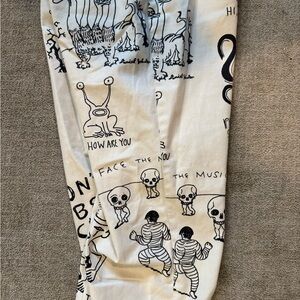 White and black graphic print jeans hella artsy idk what to price at so js send me a offer in dm I’ll be reasonable asf w these size 30#graphicjeans