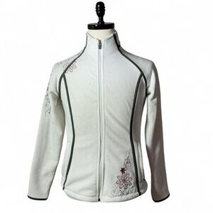 Eddie Bauer Fleece Jacket Womens M White Floral Embroidered Full Zip
