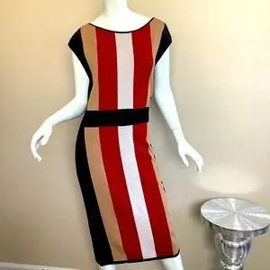 Elegant striped dress featuring bold colors for a chic look. Perfect for any occasion.