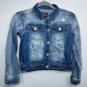 7 For All Mankind Jacket Girls Medium Denim Jean Button up Squad Stretch Party
