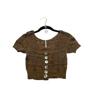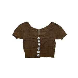 Free People Crochet Knit Cropped Bolero Sweater women Brown Size SP boho western