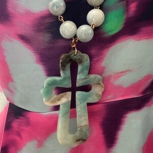 Allegra Fanjul Stone Slip Over Necklace w/Cross Pendant. Stunning stone necklace.