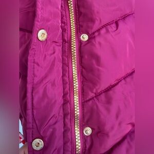 Beautiful Steve Madden long puffer coat in a rich burgundy color with faux fur hood.