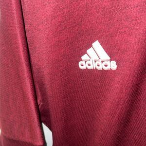 Burgundy half-zip pullover with Adidas logo. Ideal for everyday comfort. Zipper fully functional no rips tears or holes tag still