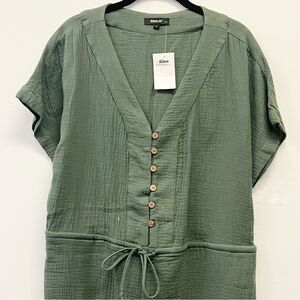Wishlist Gauze Drawstring Romper – Olive Green (Size Large)