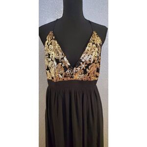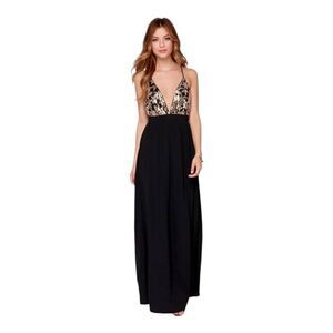 Lovers + Friends Good As Gold Black & Gold Sequin Open Back Maxi Dress Women’s M
