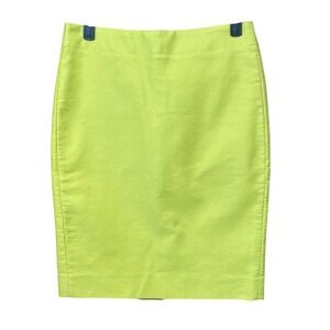 J Crew Pencil Skirt Womens Size 0 Neon Green Cotton Blend Knee Length Tailored