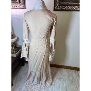Keywords: Venus dress, boho maxi dress, bell sleeve dress, crochet dress, tan maxi dress, sand color dress, women's dress, size 2 dress, bohemian dress, long sleeve dress, embroidered dress, festival dress, vintage inspired, flowy dress, casual maxi dress