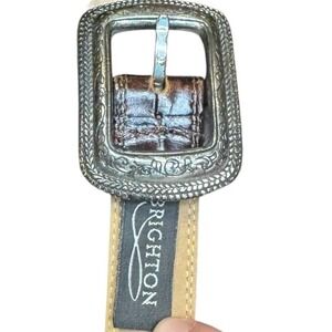 Brighton Belt Womens Medium Brown Croc Embossed Leather Silver Buckle B6208