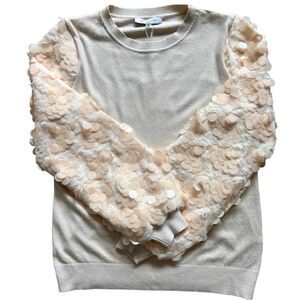 SIONI Sequin Sleeve Rib Knit Sweater In Cream Color Size M.