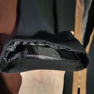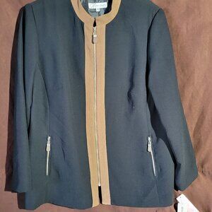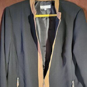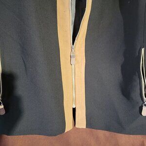 Black zip up blazer with brown/ tan accent tons on the front zipper part