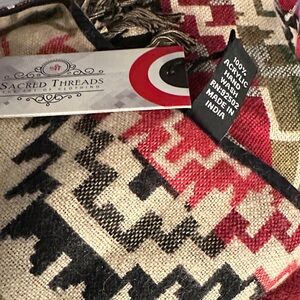 Bold patterns with a relaxed fit. Features fringe hem. Ideal for casual wear. Pit to pit is 261/2 or 53 inches around. The waist is 26 1/2 or 53 inches around. It has a drawstring waistband. The hips are 27 or 54 inches around. The length is about 40 inches with the fringe. Made in India soft acrylic fabric. Great piece for a fall chilly day. There are slits on each side that measure 121/2 inches on each side.
