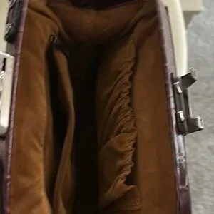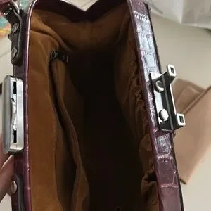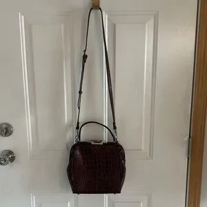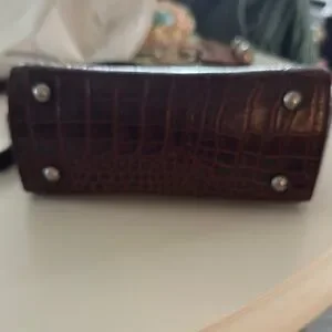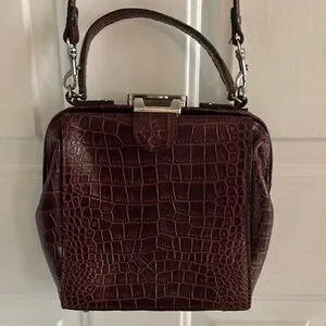 This stylish brown handbag features a sophisticated crocodile-embossed design. Perfect for any occasion, it adds a touch of elegance to your outfit.