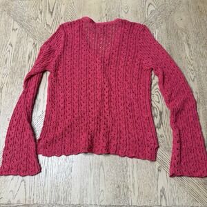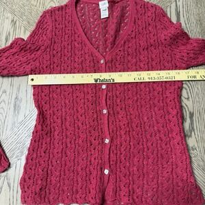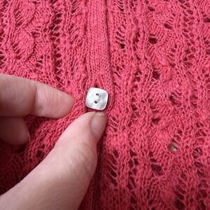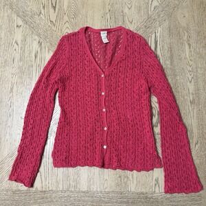 J. Jill Red Pink Medium Open Knit Button Front Cardigan Fairy Cottagecore