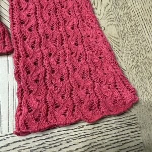 This product is a J. Jill Red Pink Medium Open Knit Button Front Cardigan, featuring a cozy and whimsical fairy cottagecore design. Made for women in a regular size M, this sweater is crafted with an open-knit pattern and accented with button detailing. Perfect for adding a touch of magic to any outfit, this cardigan embodies a delightful blend of style and comfort.