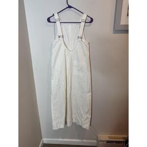 Free People Dress Womens Small White Overall Pinafore Jumper Cotton Pockets