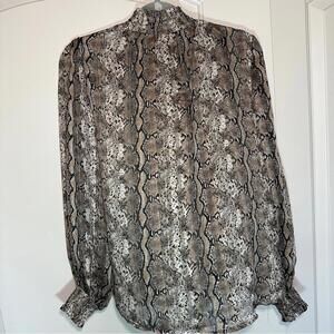 Joie Snakeskin Print Chiffon Mock Neck Long Sleeve Blouse Puff Sleeve Size: S