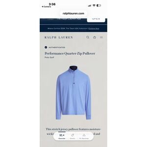 Keywords: Polo Golf, Ralph Lauren, Quarter Zip, Pullover, Performance, Moisture Wicking, Golf Shirt, Athletic Wear, Sportswear, Mens Golf, Active Shirt, Long Sleeve, Blue Top, Smart Casual