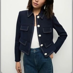 New with tag. Mod, made modern. All clean lines and a chic, streamlined silhouette, the Constantine features four flap pockets and contrast-color topstitching. This stretchy close-fitting jacket designed with pronounced topstitching.