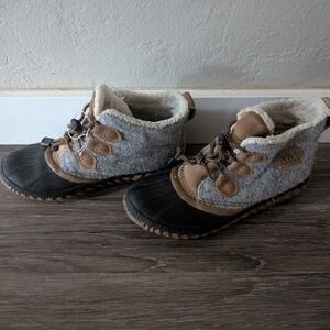 Keep your child's feet warm and stylish with these cozy winter boots. Featuring a gray and brown design, these boots are perfect for cold weather adventures.