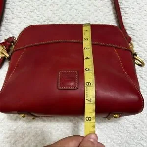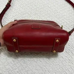 Dooney & Bourke Florentine Cameron Crossbody Red Leather. Please see photos for indications of use and measurements. Some discoloration on strap, please see photos.