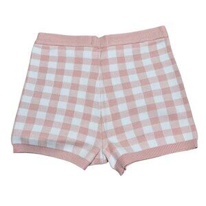 The L*Space Frankie Pink White Sweater Knit Shorts are stylish and comfortable summer bottoms perfect for travel, activewear, or casual outings. Made from a blend of polyester, nylon, and viscose, these gingham patterned shorts feature a pull-on closure and an elastic waist for a secure fit. The pink color and L*Space branding add a touch of flair to these knit shorts, making them a fashionable choice.