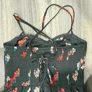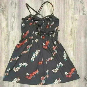 American Eagle Grey Floral Sleeveless Mini Dress Adjustable Sundress Size 10
