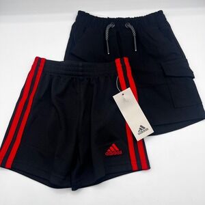 Adidas Boys 2T Shorts Black Red 3 Stripe Athletic Public Supply Cargo 2-Piece