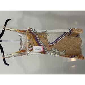 Oceanus Palm Beach Hand-Beaded Mini Dress Orange $1480