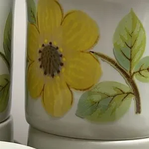 SET OF EIGHT retro vintage (1973) Royal Doulton Summer Days LS1002 stoneware coffee or tea cups only, no saucers. Vintage flower-power Lambethware Stoneware made in England