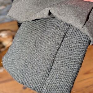 super soft and puffy, knee length, black, zipper and snaps, oversized hood, size medium, ties tto sinch waist, cloth wrists NWT
