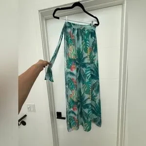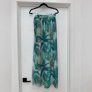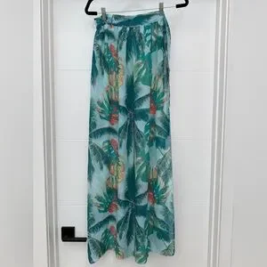 Tropical Palm Print Sheer Maxi Wrap Skirt Beach Cover-Up Resort Vacation O/S